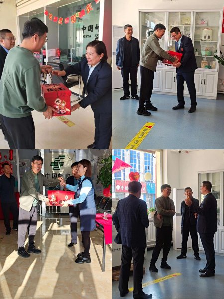 在国庆节来临之际,巴彦淖尔市邮政各营业网点加班加点抢抓有利时机,积极与客户对接,开展了全方位、多形式的宣传营销活动,为让在岗职工度过一个愉快祥和的节日,巴彦淖尔市邮政分公司有关领导、机关各部室人员以及帮扶干部组成三个慰问组,深入全市各基层网点为节日期间坚守岗位的职工送去节日的问候和关怀,并就金融业务营销及重点任务完成情况进行督导。
