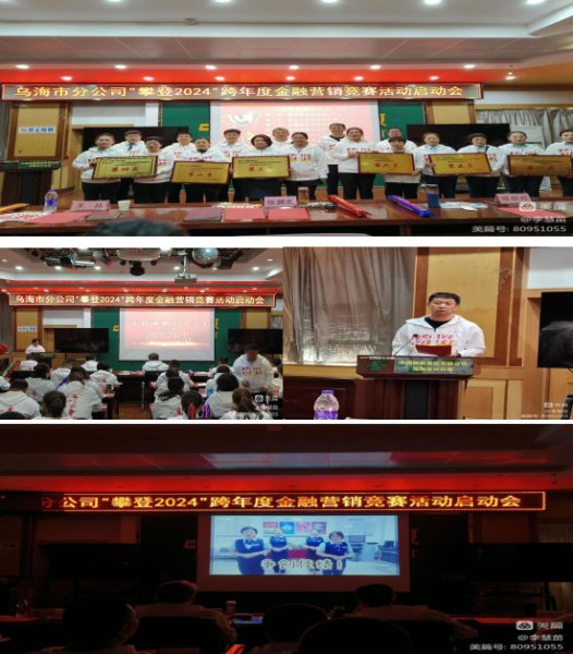 会议对千亿工程达标网点及二三季度期缴业绩先进网点、先进个人进行表彰;对《2023-2024跨年度营销竞赛活动方案》进行详细解读;市分公司副总经理银韶虹做跨年度营销竞赛活动动员讲话;三个城区分公司分别进行风采展示、现场揭标,并依次上台领取张渊志总经理授予的军令状和锦旗;海勃湾区分公司、温馨路营业所、市场经营部三个层面的代表逐一作表态发言;区分公司计划财务部王丛副总经理希望乌海市邮政坚持高标定位,顺应形势,开足马力,坚决打赢跨年度业务发展攻坚战。
