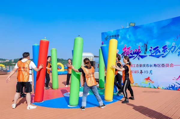 跨年战役已经打响,为促进团队合作、增进员工友谊,同时放松身心,减轻工作压力。 10月17日,长寿邮政工会举行了一场精彩的职工趣味运动会,为员工提供了一个欢乐互动的机会。在这次趣味运动会中,员工参与了各种有趣的比赛和挑战,其中包括移花接木、水到渠成、俄罗斯方块、障碍挑战赛、百人大鼓等。
