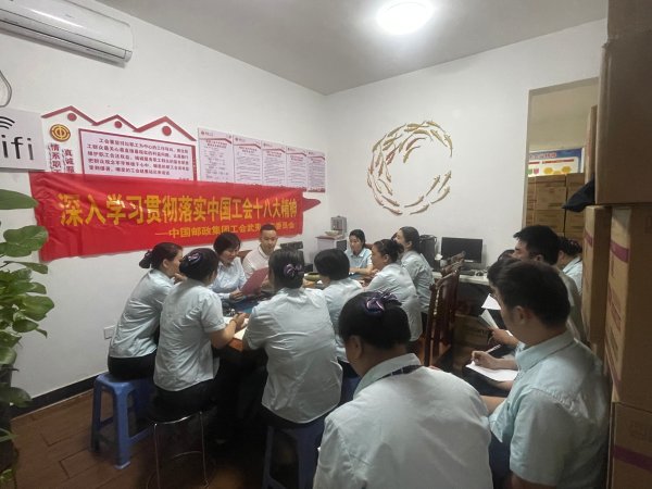 工会主席王缜首先向大家传达党中央领导同中华全国总工会新一届领导班子成员集体谈话并发表重要讲话的精神,表示坚持党对工会的全面领导,深刻领悟“两个确立”的决定性意义,进一步增强“四个意识”,坚定“四个自信”,做到“两个维护”,积极践行工运时代主题,团结广大职工以主人翁姿建功新时代。先进个人李青妹满腔激情地宣讲了中国工会十八大报告和《论述摘编》。通过一系列学习宣讲,使大家更加深刻感悟了中国工会十八大精神,大家纷纷表示,要更加坚定不移听党话、跟党走的决心,凝心聚力为邮政高质量发展再立新功。
