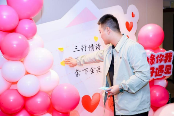在此留下爱情宣言——活动现场设计了很多符合当下年轻人审美和兴趣的打卡装饰,参与活动的青年朋友在打卡时写下爱情宣言,留下彼此最初的美好印象。