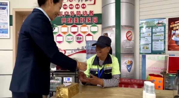 在驿站内,各营业网点提供了工具箱、雨伞、应急药箱、针线包、书刊架、抽纸、打气筒、饮水机、微波炉、多功能充电器等设备,为户外工人提供遮风避雨、歇脚休息的场所,确保他们“冷有地方取暖、热有场所纳凉、渴有热水供应、累有站点歇脚”。饮水、热饭、阅读、休息、充电等便民服务,让各网点爱心驿站成为了户外工人的“第二个家”。