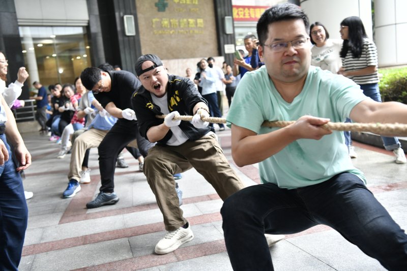 广州市分公司职能部室开展了第二届“奋斗·活力”杯拔河比赛。比赛开始前,4支部室联队的60名队员伍蓄势待发,现场气氛紧张而热烈。随着裁判员一声令下,选手们倾尽全力,使出浑身解数,绳子中间的红布不断地在两队之间移动。现场呐喊声、欢呼声此起披伏,不仅上演了一场力量的较量,更展示了邮政员工团结奋进、全力以赴、永不放弃的精神风貌。