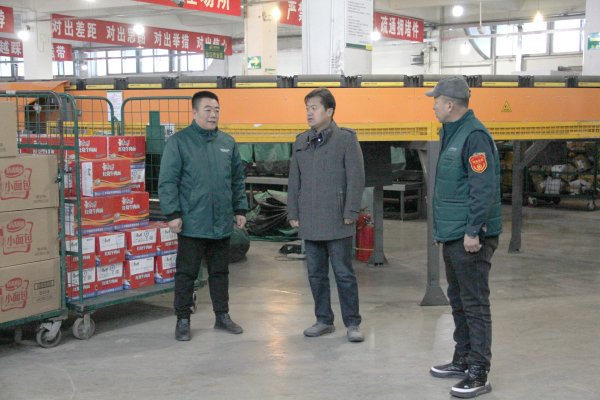 在慰问过程中,吕贵斌主席一行现场查看了邮件处理量及设备运行情况,详细了解近期车辆、人员的安排方案,对职工们虽然身处室外近零下20度和室内近0度的环境中,但依然坚守岗位、迎难而上的工作态度表示肯定,对他们为保障邮路运输畅通、确保邮件不延误不积压所做出的努力和付出表示感谢,并为他们送上方便面、面包、香肠、卤蛋等慰问品。同时,嘱咐职工们在保证身体健康、行车安全的基础上,继续发扬爱岗敬业、不辞辛苦的精神,认真做好旺季各项工作,全力保障邮件运输投递质量,以实际行动践行“人民邮政为人民”的服务宗旨。