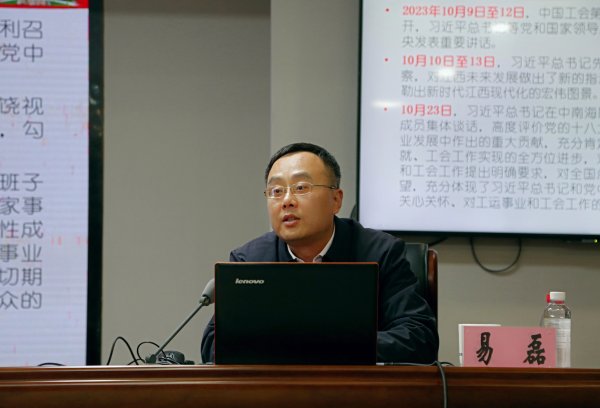 报告会邀请到江西省委党校群团理论教研部高级讲师易磊授课,他以《学习中国工会十八大精神,谱写新时代新征程工会工作新篇章》为主题,对中国工会十八大精神进行了详细梳理,授课脉路清晰,化繁为简,重点突出,层次分明,对全省邮政专兼职工会干部进一步深入理解把握中国工会十八大要求,掌握当前工会工作面临的形势任务,明确未来工会工作的思路设想很有指导意义。