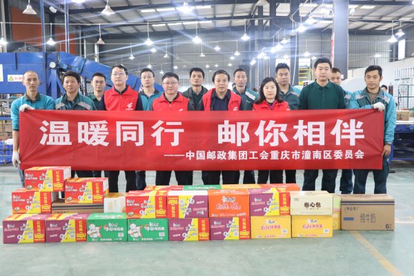11月10日,潼南邮政工会开展关爱揽投员“暖蜂行动”,领导班子带领突击队深入邮件运营中心,为奋战在寄递一线的揽投员、内部处理人员送去生产生活物资,并开展邮件卸车、分拣、后勤服务等帮扶工作,助力“双11”旺季生产,让一线从业人员感受到企业的关怀和温暖。