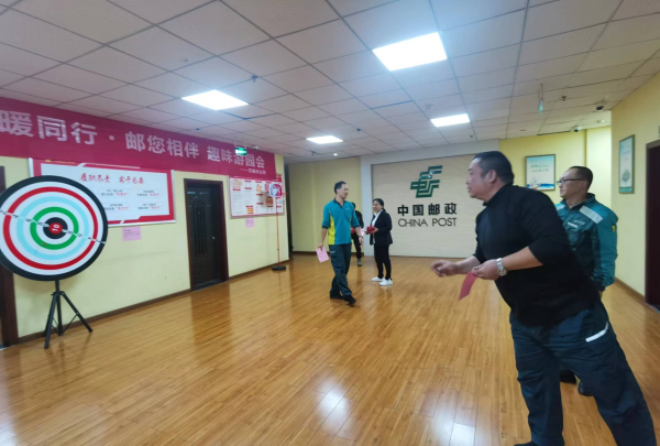 为培养职工健康积极向上的生活态度,增加职工相互沟通交流的机会,进一步推进旺季生产期间工作凝心聚力,11月9日,万盛邮政工会举行“温暖同行,邮你相伴”趣味游园活动,游戏项目丰富多样,员工汇集在各个游戏点前,在“踢毽”游戏点前,众多员工兴趣盎然,踊跃排队,在“投篮”游戏点前,大家信心满满,志在必得,在“掷飞镖”游戏点前,大家从容不迫,迅速掌握通关技巧。