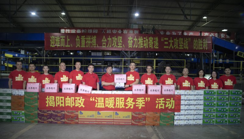 “双十一”旺季生产期间,揭阳市分公司、市邮政工会联合开展“温暖服务季”慰问活动。11月11日,揭阳市分公司领导班子一行前往揭阳邮区中心实地调研督导“双十一”旺季生产情况,看望慰问一线员工,为连日昼夜奋战在生产一线的员工送上矿泉水、面包、方便面等慰问品,鼓励大家再接再厉、全力以赴,打好“双十一”旺季生产攻坚战。