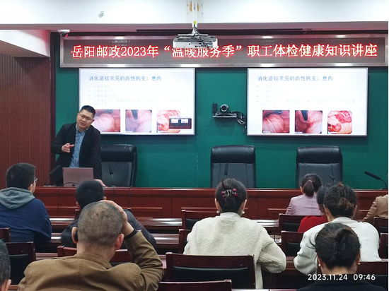 针对今年职工体检中出现的部分存在健康风险的群体问题,11月24日,岳阳邮政工会特邀了岳阳市人民医院专家组,在市本部会议室开展了“温暖服务季”健康体检知识讲座,,将精准体检排查工作做细做实,为岳阳邮政高质量发展保驾护航。