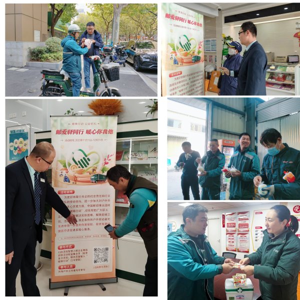 为深入贯彻落实党的二十大和工会十八大精神,普陀区分公司工会根据市公司工会38号文件精神,积极向广大员工宣贯“邮爱驿同行 暖心你我他”等温暖服务季主题活动内容。在区分公司党委带领下,普陀区分公司各部门工会积极组织开展相关工作,借力各支局爱心接力站和服务厅堂全年开放优势,积极开展温暖服务季工作,第一时间张贴“暖蜂行动”宣传海报,引导外勤工作者、户外劳动群体:邮政揽投员工、外卖骑手、环卫保洁等了解健康咨询服务相关信息、公益普惠赠险服务介绍等。