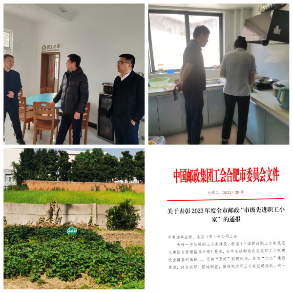 职工小家是企业与职工之间的桥梁纽带,是职工的心灵栖息之所,让职工感受到企业关怀和家庭温暖,为切实加强职工小家规范化建设,增强职工小家吸引力、凝聚力,按照安徽省分公司工作部署,依据基层工会上报,经材料图片初审,11月中下旬,合肥市邮政工会成立验收小组,由副主席牵头,开展“市级先进职工小家”现场验收评级工作。验收小组认真对照《中国邮政职工小家规范化建设与管理指导手册》对小家现有硬件设施、制度文化上墙、台账登记、民主管理等内容进行了验收,认真记录了特色亮点,严肃提出了整改措施,经验收小组会审,最终选出肥东石塘邮政支局等6个职工小家为“市级先进职工小家”。