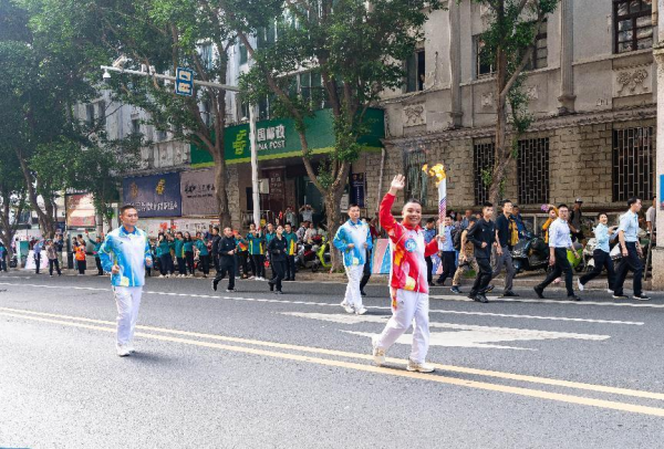 9时30分,在梧州市南环路24号骑楼城主题邮局门前,朱哲与上一棒火炬手完成交接,点燃火炬,开始传递。“很荣幸能够成为本届学青会梧州火炬传递手。”他表示,“火炬传递的是一种积极向上,坚韧不拔,永不服输的精神,而作为一名邮政快递员,每天奔跑在路上,从寄件人的手中接过他们托付的物品,等同于接过了寄件人手中的责任把这一份责任一环环的传递到收件人的手中,传递的是一份心愿与希望。”