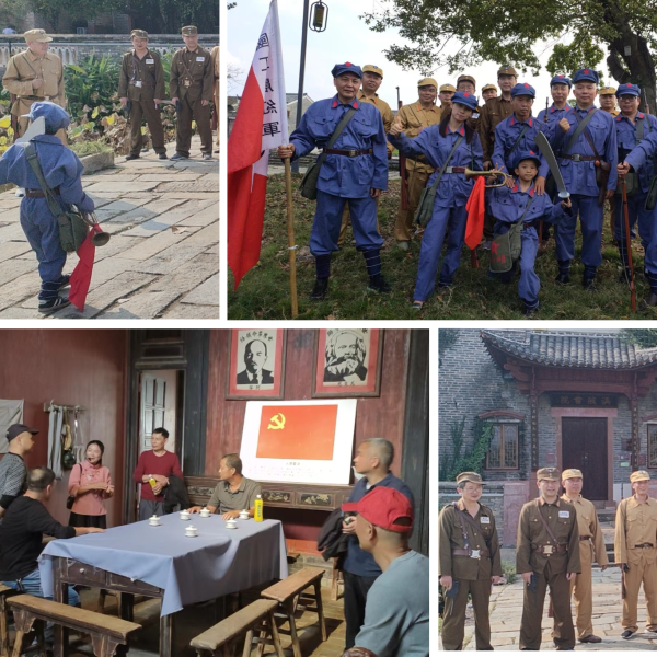在吉安,宜春邮政员工游览了集佛教文化、名人文化和秀丽风景于一身的江西文化名山—青原山,领略了被南宋著名诗人杨万里誉为“山川第一江西景”的秀美风光。游览青原山,员工们发掘文化底蕴,接力历史荣光,增进了对庐陵文化尤其是阳明心学的认知。在渼陂古村景区,员工们化身“戏精”,投入到《井冈山保卫战之保卫渼陂》电影的拍摄。员工们换上角色服装,变身司令、参谋、排长、伙夫。虽说有专业导演的指导,但是台词的腔调、表情的拿捏、表演的火候,无不考验着这群表演“小白”,搞笑场景不时出现,正派反派笑作一团。大家欢快地体验了一把“我就是演员”真人秀,拍摄了专属于自己的微电影。
