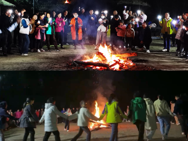 在素有中国最美的湖光山色之称的庐山西海,员工们来到金沙滩月牙岛,碧水晴空映照着湖光山色,金色沙滩上,大家三五成群,有的相约玩起了激流勇进皮划艇,有的玩起了回味童年的“小黄鸭”,有的比拼射箭术、有的挑战高空滑草。爱动的,畅玩游戏嗨翻了天,仿佛回到童年时光;爱静的,用手机拍摄下一帧帧美图,静静享受冬日暖阳。月上树梢,繁星点点,金沙滩上生起了篝火,大家手拉着手,环绕着燃烧的火焰,欢快地舞蹈跳起来,嘹亮的歌声唱起来,狂欢之夜就此开启。