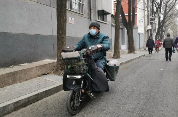 上午9点45分,国光柱来到了南营房一处老居民区,这里的楼房陈旧,道路曲折。他轻车熟路地把车停到一栋楼门前,快速地将分好的报纸和信件拿在手里。由于这里的居民年纪较大,国光柱一户一户上门投递。他的动作虽然冻得有些僵硬,但依然坚定有力。“光柱,过年好啊!”街坊四邻看到他都露出亲切的笑容,并给他送上了新春的祝福。