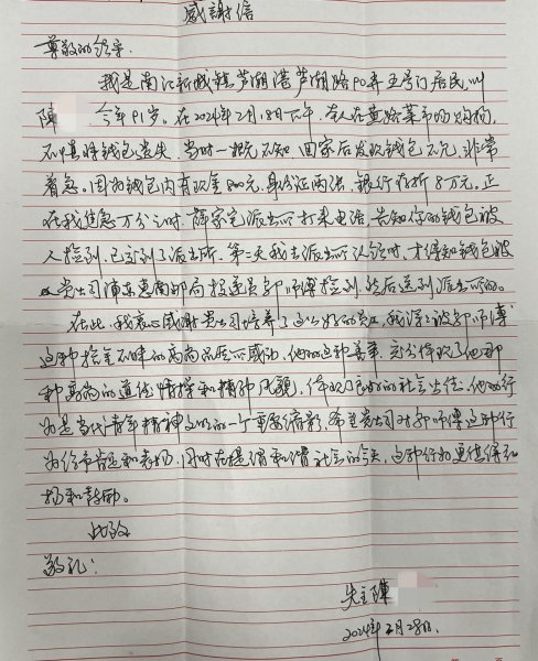 2月18日下午,惠南支局投递员邬正良像往常一样出班投递。3点半左右他来到黄路菜市场附近,在地上捡拾到一个钱包,打开发现里面有现金、银行存折,还有两张身份证,仔细一看,身份证属于八九十岁的老人。想到失主必定心急如焚,邬正良第一时间拨打了110,主动汇报了捡拾钱包情况,并在送完邮件后将钱包送至当地派出所。事后,得到失主家属电话称赞。邬正良说,自己的举动并不特殊,相信很多人都会这么做,质朴的话语让人心生敬意。