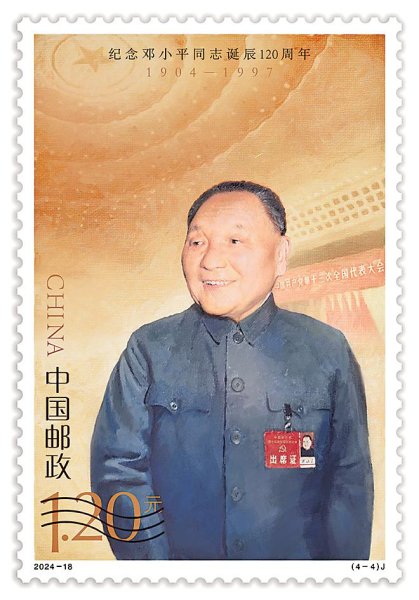 本报讯(记者 潘琛)8月22日,《纪念邓小平同志诞辰120周年》纪念邮票将发行。该套邮票一套4枚,邮票图案名称分别为“勤工俭学”“戎马岁月”“科学春天”“改革开放”。