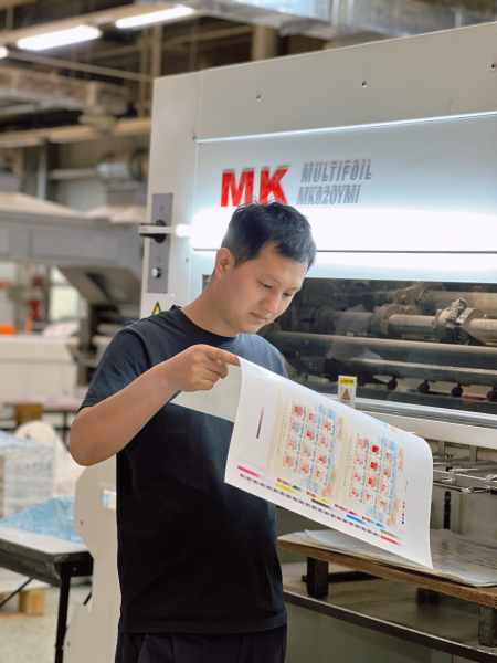 公司从2023年开始承印全部邮票的生产任务,胶版邮票使用了?烫金?起凸等工艺市场反响良好,《昆虫(二)》特种邮票荣获最佳印刷奖,采用的附加三维起凸、烫印工艺、异形齿孔、荧光喷码等工艺,展示了我国邮票印制的新水平。 胶版(平张)纪特邮票的?烫印、?起凸、打孔等工艺是生产过程中的关键工序,不断降低工序损耗率是摆在各工序操作人员和质量人面前的技术难题,关键问题之一是确保各工序定位规矩的精准。 2024年,质量管理部调研了中鸿公司烫金起凸工序、打孔工序,提出“在印刷纸张拉规侧,按纸张尺寸增加一条与纸张宽度通长的‘拉规纸边线’”措施,在胶版邮票《中国篆刻(二)》应用后,该套邮票标准合格率完成情况比《昆虫(二)》提高了5.18个百分点。在阶段性试验的基础上,部门的张丽、郑莲起草了《胶印单张产品印刷规矩与印后加工工序规矩质量控制要点(试运行)》,巡检组组长叶尚辉带领组员讨论确定。随后,在印制《越剧》《秦岭》《中国篆刻(二)》《世界自然遗产—澄江化石地》等胶版邮票普遍应用。 增加的这条“线”起到了关键作用,烫金起凸工序、打孔工序的操作人员能更直观发现半成品纸张规矩变化情况,?观察“线”距离纸边的变化,及时调整,“线”就像一个精确的标尺,让操作人员能够准确地确定印品位置,既准确的操作又加快生产速度,以减少各个后加工工序损耗品数量,?从而提高产品整体质量和生产效率。 2024年9月是第47个全国质量月,质量管理部围绕今年全国质量月主题“加强质量支撑?共建质量强国”,牢固树立精打细算“过紧日子”的思想,从“小技改”中挖出降本增效“大成果”,精细各环节质量成本,推动作业组织优化降本,持续推进质量改进措施,推动企业业务成本压降。