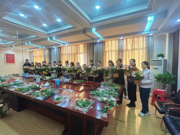 为切实关心关爱广大职工,凝心聚力共筑推动经营发展,进一步提升邮政职工的幸福感和归属感,结合全省邮政开展的“温暖服务季”活动,六安邮政工会11月14日组织开展了 “花艺疗愈温暖心灵”心理健康教育活动。 “选花、剪枝、摘叶,尽情发挥创造力、想象力…”插花现场,花艺老师以花艺工具开场介绍基础花艺理论,不同形状的花材呈现出风格各异的造型,为大家展现精彩纷呈的插花艺术。大家在老师的精心指导下,将事先准备好的玫瑰花、洋甘菊、向日葵等多种花材根据色彩、形状,结合理论知识,充分发挥想象力进行搭配,最终完成自己的插花作品。现场氛围和谐温馨,大家享受着花艺疗愈带来的快乐。