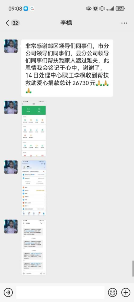 温暖在芜湖邮政传递。近日,芜湖邮政工会组织职工为困难职工李枫爱心捐款,在体现工会对会员的关心关怀的同时,让职工感受到企业大家庭的温暖。 市分公司寄递事业部邮件处理中心职工李枫同志因爱人突发脑溢血,家庭经济遭遇困难。市邮政工会在得知李枫的处境后,由工会牵头倡议举行爱心捐款活动,号召全体职工伸出援助之手,积极为李枫捐款。 倡议发出后,受到了广大职工的热烈响应。点点爱心,汇聚成河,无私助人,温暖人心。仅仅一天时间,就募集爱心捐款53915元。 本次爱心捐款活动,体现了芜湖邮政职工团结互助的良好风貌,让处于困境中的李枫及其家属感受到身边的同事、企业领导都在关心、支持他,希望他和家人能在困境中坚持不懈,重树对生活的信心。