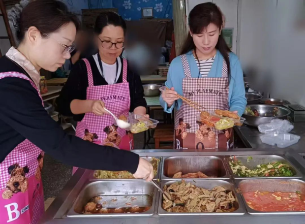 当揽投员风尘仆仆返回单位,工会慰问组已在食堂准备好午餐。她们戴上围裙,熟练地拿起餐盒和勺子,变身为配餐员,细心地为每一份餐盒装饭和菜,红烧肉圆、醇香鸡腿、清炒时蔬、热腾腾的米饭……每一份餐都分量十足、营养均衡,承载着满满的关怀。