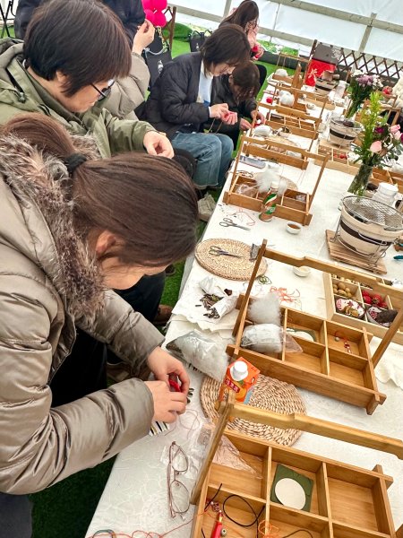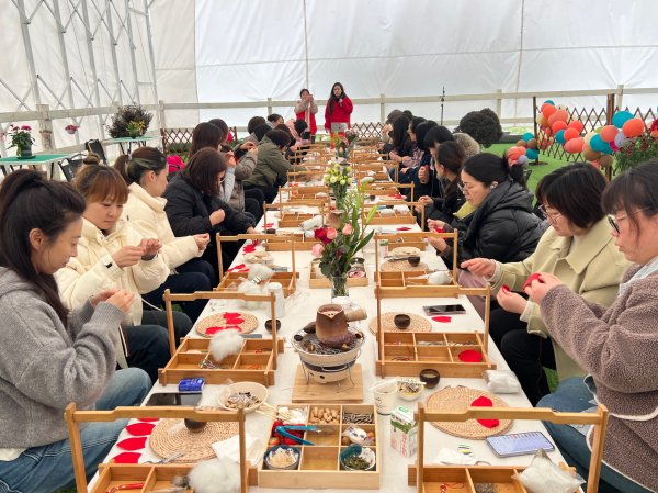 穿针引线、填充药材、缝合收口,各种步骤井然有序,女职工们兴致勃勃,互相交流学习。活动当天工会还为大家准备了围炉煮茶,室外春风凌冽,室内炉火暖心,现场气氛热烈融洽。不一会儿,一个个造型精美、香气扑鼻的香囊就诞生了。大家互相欣赏、交流制作心得,感受手工制作的乐趣。