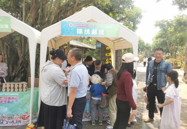 定安县分公司在定安母瑞山举办的黎族苗族“三月三”节庆活动中设置邮政服务点,开展集邮文创和分销产品的宣传推广。