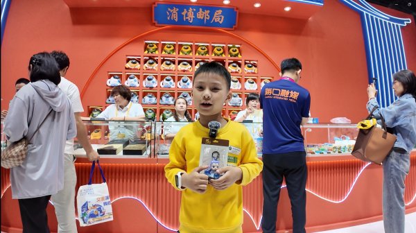 在消博邮局推出的各类文创产品深受大家喜爱,尤其是哪吒系列文创产品特别受小朋友们的青睐。来自海口的屠朝帅小朋友说:“我今天和妈妈来逛消博会,看到了我最喜欢的电影人物敖丙的挂件,想买回去挂在书包上。”