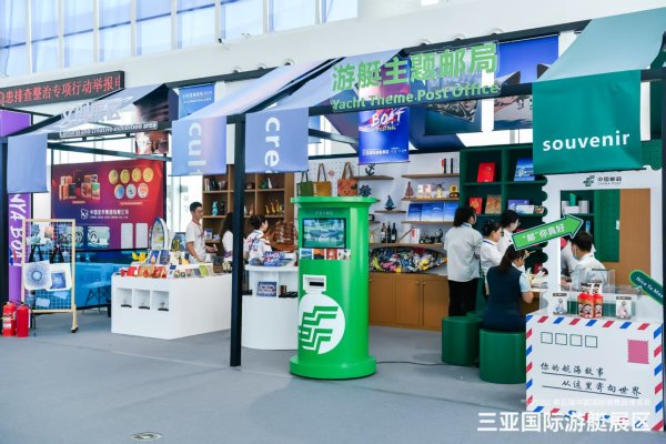 此外,在位于三亚的消博会国际游艇展区,中国邮政打造的游艇主题邮局同样人气爆棚。这里推出各类文创产好物,并提供个性化有声明信片定制服务。现场人头攒动,大家挑选心仪产品,体验明信片制作,并将这份独特的纪念邮寄给亲朋好友。