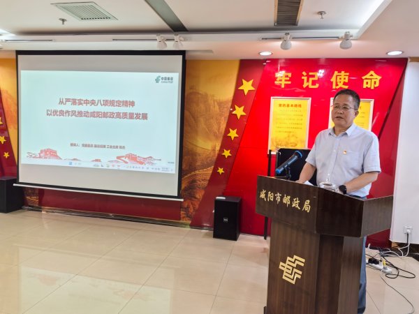 6月23日下午,副总经理、工会主席陈杰以《从严落实中央八项规定及其实施细则精神,以优良作风推进咸阳邮政高质量发展》为题,为分管部门党员干部讲授专题党课。党课立足企业发展实际,从五个方面进行了系统阐述: