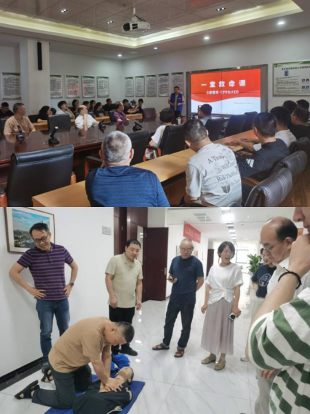 为强化健康保障,给员工提供更加全面和专业的健康支持,7月9日,省信息技术中心工会联系迈瑞医疗厂家,组织开讲“一堂救命课”,科普日常急救知识。围绕“拯救黄金4分钟”主题,培训讲师通过图文视频动画,演示并讲解了心脏工作原理、AED除颤原理、心脏骤停紧急处理流程,以及心肺复苏(CPR)和人工呼吸的操作要点,大家听得认真而专注。随后大家来到大厅走廊,在培训讲师示范带领下,大家利用AED训练机和训练假人,开展急救模拟实操练习。在讲师耐心指导下,在训练机反复提示下,大家从一开始既紧张又兴奋的忙乱,逐渐变得从容不迫,可以按照动作要领有效完成整套急救流程。通过学习和训练,大家参与并代入到现场群众性救护状态,掌握了基本救护常识和施救原则,学习了重要急救技能,培养了“人人学急救,人人敢急救”的良好社会责任意识,也实现了“一堂救命课”的真正意义。