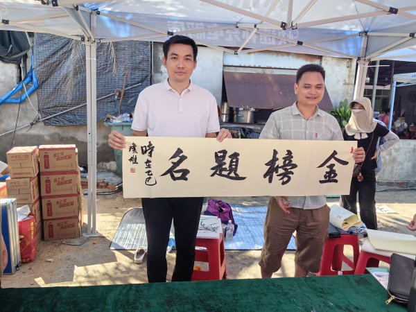 随着高考的日益临近,现场推出的“一举夺魁”“都是高分”等寓意美好的帆布袋文创产品引发了家长及学生的共鸣,备受喜爱。此外,昌江县书法协会的名家们也来到现场,挥毫泼墨,为高考学子书写“金榜题名”的墨宝。一幅幅饱含祝福的书法作品,不仅传递了对学子的美好期许,更展现了邮政的人文关怀。