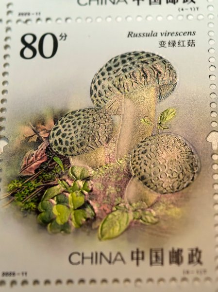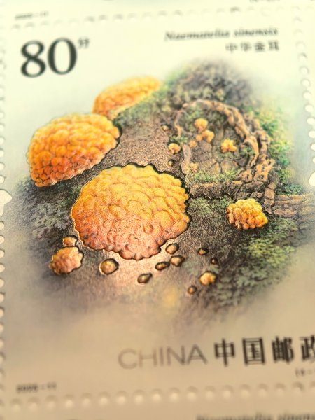 《食用菌(二)》邮票采用高精度胶版五色+香味墨+三维起凸多种工艺印制,使观赏者可通过视觉、触觉、嗅觉多维度层面欣赏邮票,营造沉浸式的感官联想,增强邮票的互动性和趣味性,实现工艺美学与互动趣味的有机融合。 该套邮票整体画面清晰,色彩清新淡雅,层次丰富,高精度五色胶印印制工艺使得邮票近乎完美的呈现出设计原稿的细腻柔美,其中蓝、专灰油墨在紫外灯下发绿色荧光,整体使用10μ调频局部调幅制版。黑、蓝、红、黄、专灰五种油墨的精准叠印,清晰捕捉到图稿特点,并精准还原图稿中各个蘑菇的每一处细节与色彩变化,还原了原稿的色彩表达和颜色层次,凸显出蘑菇的质感。从蘑菇伞帽表面的纹路、深浅不一的色泽过渡,到菌褶间微妙的光影变化,都清晰且细腻地复刻在邮票上。通过摩擦邮票画面激活松树味香味油墨,使邮票萦绕在森林草木的自然芬芳中,巧妙营造原生态氛围。同时,使用三维起凸工艺增强邮票的立体感,对蘑菇主体、伞帽、菌褶等不同部分进行不同的高度起凸,触觉差异还原了新鲜蘑菇的肌理。 在多种工艺的综合运用下,观赏者可通过视觉鉴赏、指尖触摸与嗅觉感知的多维度交互来欣赏邮票,触摸邮票时不仅能感受到立体的蘑菇手感,同时还激发香味油墨,从视觉、触觉、嗅觉多维度营造沉浸式的感官联想,增强邮票的互动性和趣味性,实现工艺美学与互动趣味的有机融合。