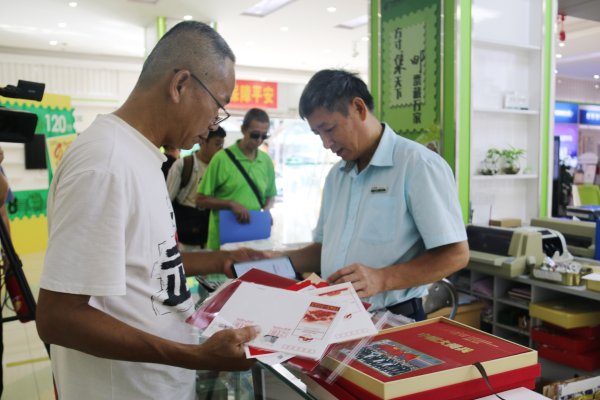 早上8点,澄迈县分公司环城西路支局正式发售该套纪念邮票,集邮爱好者们早早便在营业厅外排起队伍等待购买。