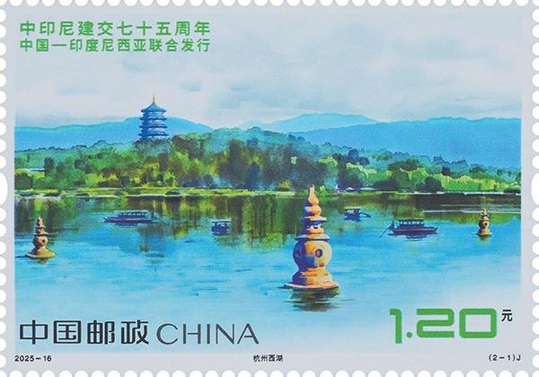 本报讯 中国邮政定于8月30日发行《中印尼建交七十五周年》(与印度尼西亚联合发行)纪念邮票一套两枚,邮票图案名称为:杭州西湖、布拉坦湖。