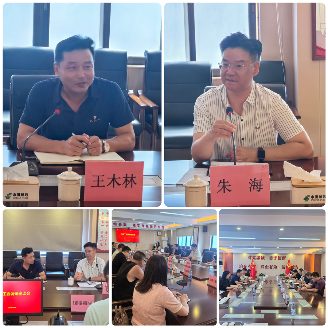 近日,市总工会一行赴汕尾市分公司,围绕邮政外包领域工会建设及新业态劳动者权益保障开展专题调研座谈。市总工会组宣部部长王木林,汕尾市分公司副总经理、工会主席朱 海,工会副主席林晓彤,相关部门负责人及5家邮政外包合作方代表参会。