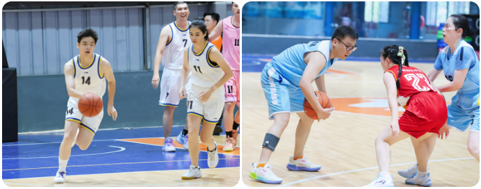 在三男两女对抗赛中,男女队员默契配合、攻防兼备,成为赛场亮点。传球、阻挡、防守、抢板、反击……每一个战术配合都流畅自然,每一次得分都凝聚着团队智慧,充分彰显出邮政人“心往一处想、劲往一处使”的协作实力。