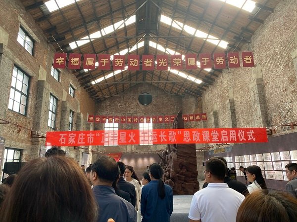在石家庄市教科文卫工会举办的“双进共建 校企同行 石家庄工人大思政课提升年”启动仪式上,石邮院马克思主义学院思想道德与法治教研室成为石家庄劳模匠心思政课创新联盟成员。石邮院工会与企业劳模创新工作室、石家庄7所院校围绕宣讲技巧、思政课创新、“双进工作”等内容开展深入研讨,交流经验。依托正丰矿工业遗产建筑群,学院工会与其他共建单位参加了石家庄市总工会开展了“正丰星火 工运长歌”思政课堂启用仪式,联盟成员和劳模工匠结合工运史微课开启思政第一堂课。