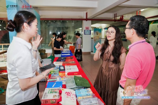 活动期间,海口邮政在现场设立了临时邮局,为海南师范大学的学子们提供集邮文创产品、图书等服务,增添了活动的互动性和趣味性。