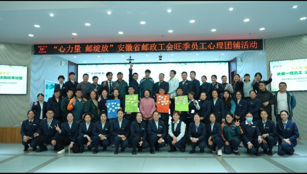 为深入贯彻省分公司党委关心关爱员工的部署,助力全省邮政决胜旺季营销攻坚战,10月21日,淮南市邮政工会成功承办全省“心力量邮绽放”旺季员工心理团辅活动。本次活动由省邮政工会统筹组织,旨在为一线员工纾解压力、凝聚合力,为旺季攻坚注入温暖而坚定的“心”动能。作为承办单位之一,淮南市邮政工会高度重视、周密策划,各基层分会协同配合,精心布置场地、统筹人员安排、落实后勤保障,确保活动有序开展。全市50名来自揽投、理财等关键岗位的一线员工代表齐聚一堂,共同体验了一场寓教于乐、润泽心灵的“心理按摩”。此次心理团辅,既是省分公司党委心系基层、传递关爱的具体实践,也是淮南市分公司落地人文关怀、锻造高素质队伍的有力举措。参与员工纷纷表示,通过活动有效释放了压力、增强了归属感,未来将以更加饱满的热情、昂扬的斗志和健康的心态,把“心”力量转化为“实”行动,在旺季攻坚的战场上奋勇争先,为安徽邮政“皖美”形象增辉添彩!