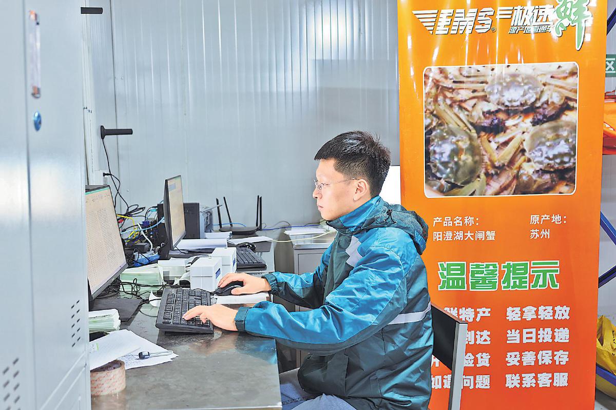 今年,江苏邮政灵活调控前置场地作业时间,持续优化前置营运中心,为阳澄湖大闸蟹寄递运营提供了全方位保障:采用“错峰出行”策略,强化大闸蟹运输及仓储保障;加密投递频次、延长揽收时间,实现全国257个主要城市次日递或隔日递;为蟹农提供全天候服务,进一步提升了应对处理效能。