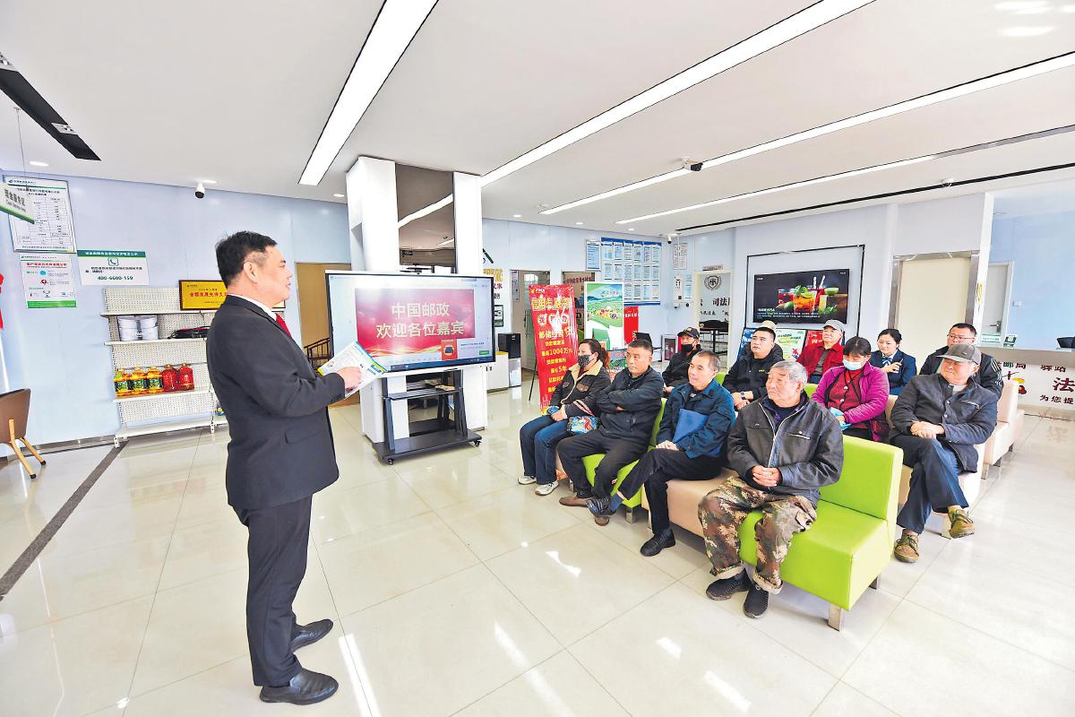 10月20日,沂源县人民法院东里法庭负责人齐元林到法邮服务站给农民普法。