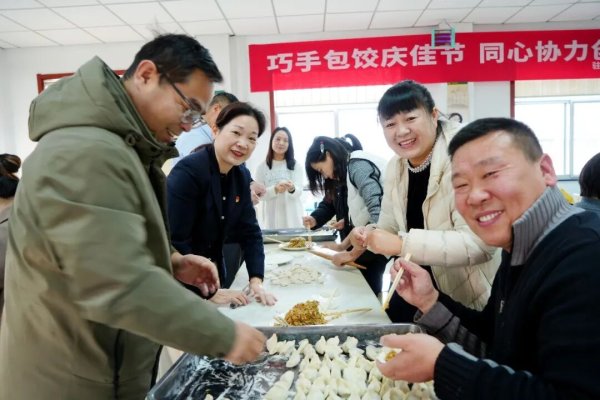 市分公司党委委员、纪委书记、副总经理王海峰,党委委员、工会主席、副总经理何扬一起来到活动现场,干部职工齐聚一堂,协作配合包饺子,为跨赛发展加油鼓劲。