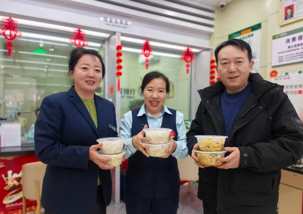 冬至当天,一线网点依旧繁忙,员工们专注办理业务。配送人员带着热气腾腾的饺子到达时,大家停下手中的工作,接过饺子,脸上露出笑容。同事之间互相传递饺子,分享节日的喜悦,网点内充满温馨的气氛。员工们表示:这次活动让他们感受到公司的温暖,缓解了工作中的疲惫,心里有说不出的感激。