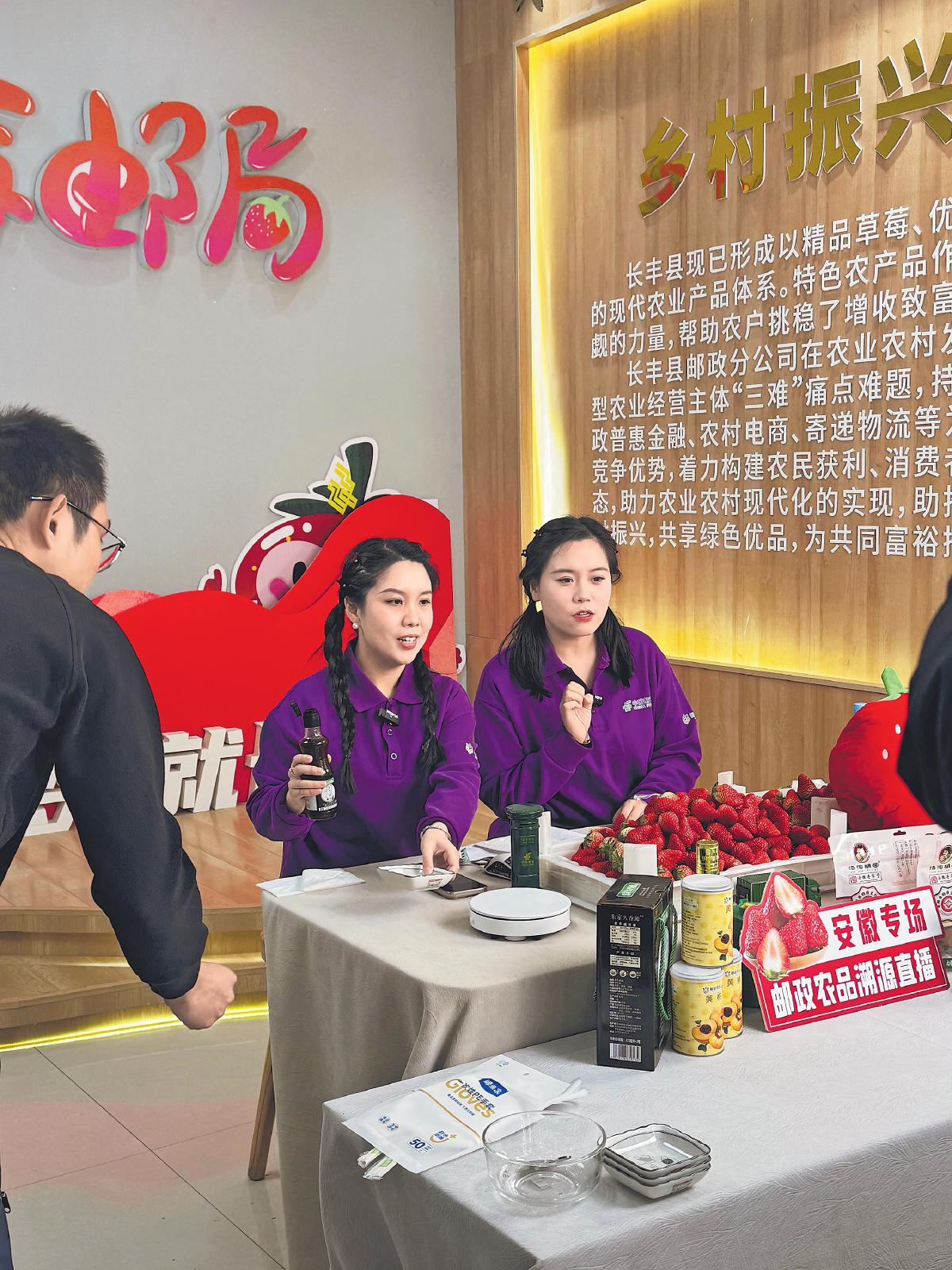 合肥邮政开展草莓溯源直播活动。□常馨尹 摄