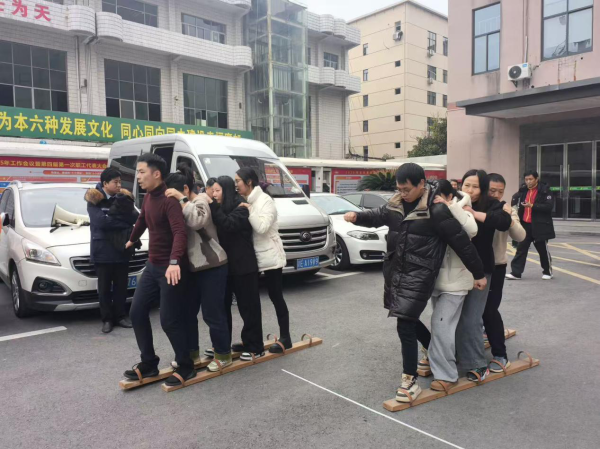 “步步为赢接力赛”中,队员们脚绑协力道具,喊着整齐口号稳步前行,交接瞬间的眼神交汇,传递着信任与力量,赛道两旁的加油声此起彼伏。