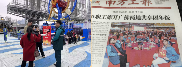 这次活动为员工们精心筹备了粤式特色团年饭,美味菜肴搭配寓意吉祥的广式甜点,兼顾口感与年味,让大家吃得舒心、吃得满意。工会还为每位员工送上丰富的新春慰问品,一份份沉甸甸的礼品,承载着工会组织对一线劳动者的真切关怀与美好祝福,让邮政员工们倍感温暖、备受鼓舞。活动期间,广州邮政一线员工王朋作为职工代表,接受了南方+、中国新闻网等多家媒体采访,他动情说道:“作为一名邮政一线员工,常年坚守岗位,很少有机会和这么多各行业同行一起吃团年饭。感谢市总工会和广州邮政工会的贴心安排,不仅让我们品尝到了美味的团年饭,更感受到了浓浓的节日氛围,这份温暖让我们心里特别踏实。新的一年,我们会继续坚守岗位、履职尽责,用心做好邮政服务,为广州城市运转贡献邮政力量。”