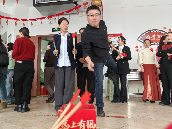 活动吸引百余位职工踊跃参与,现场设置多元主题区域,通过趣味游戏、集福打卡等形式,营造其乐融融、年味十足的节日氛围。拓福贴画、趣味投壶、喜乐猜灯谜等民俗体验,让职工在游乐中感受传统文化魅力;好运乒乓、滚滚乐等互动游戏笑声不断,大家争相刷新纪录、比拼乐趣;幸运大转盘环节将活动推向高潮,职工们像“赶大集”一样打卡集贴纸、兑换新年好礼,尽享通关喜悦与新春好运。