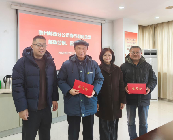 在2026年春节到来之际,泰州市邮政分公司领导班子分组带队看望、慰问全市邮政劳模、困难职工代表,送上慰问品、慰问金和最美好的祝福,将分公司党委的关怀和温暖送到劳模和困难职工的心坎上。