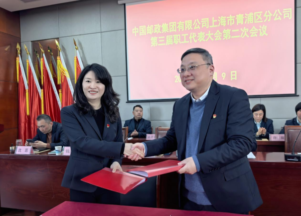 会上行政方、工会方共同签订了《中国邮政集团有限公司上海市青浦区分公司2026年度行政与工会平等集体协商实事项目》。